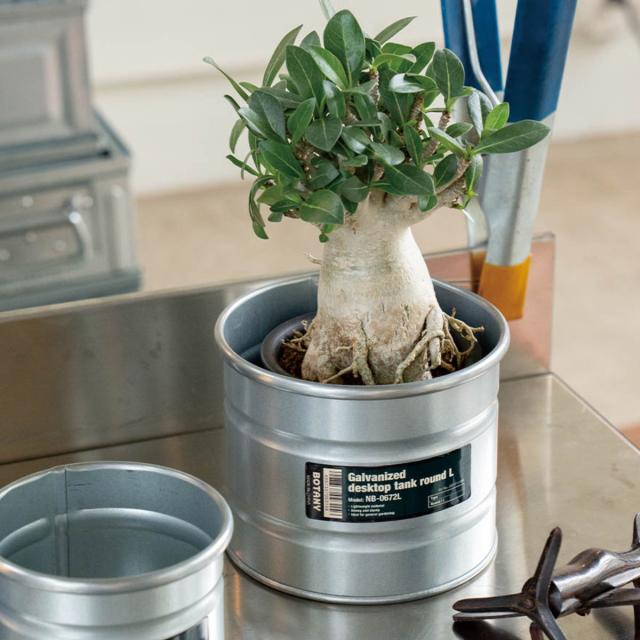 植物の樹形や葉色を存分に引き立てるガルバナイズドタンク