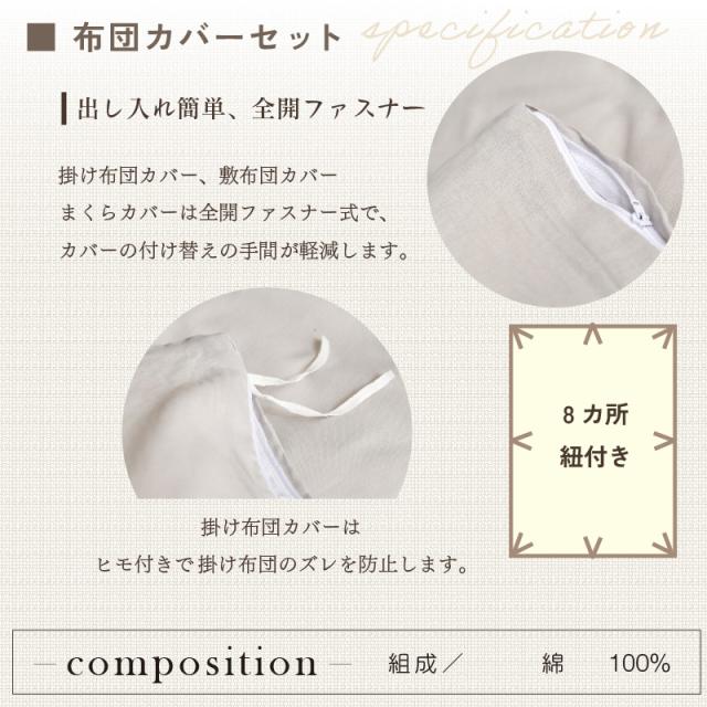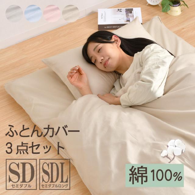 布団カバー 3点セット 綿100% セミダブル セミダブルロング 布団カバー 掛布団カバー 敷布団カバー 枕カバー 同色セット オールシーズン 吸水性 通気性