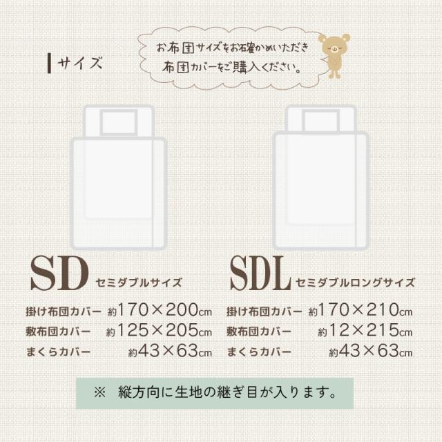 【セミダブルサイズ】(掛けカバー)約170×200cm (敷カバー)約125×205cm (枕カバー)約43×63cm