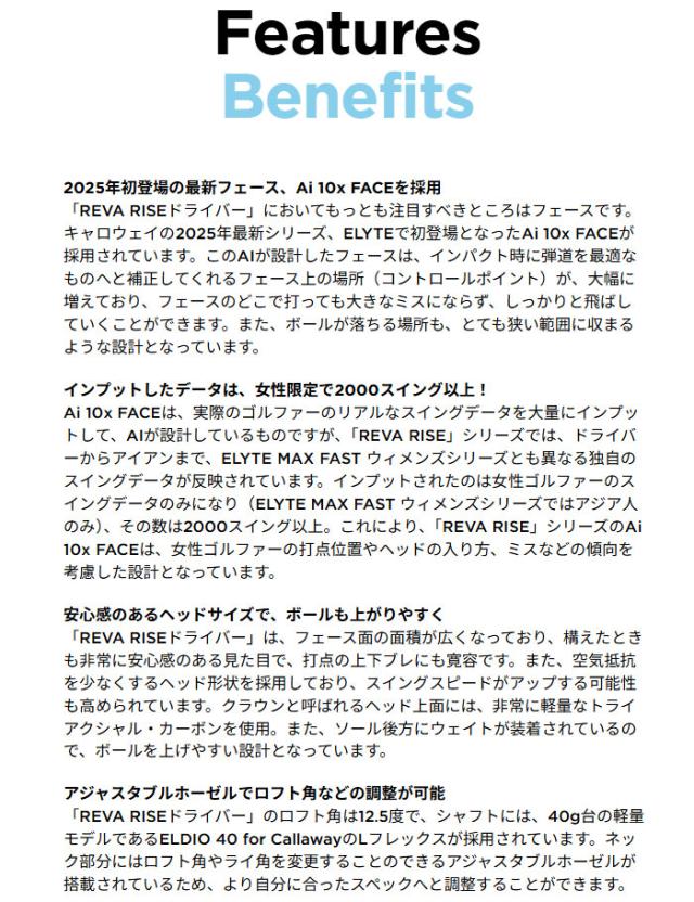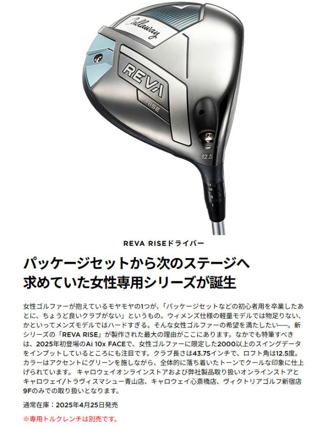【レディース】キャロウェイ REVA RISE WOMEN'S ドライバー ELDIO 40 for Callawayシャフト 2025年モデル[日本仕様][Callaway][レヴァ ライズ]