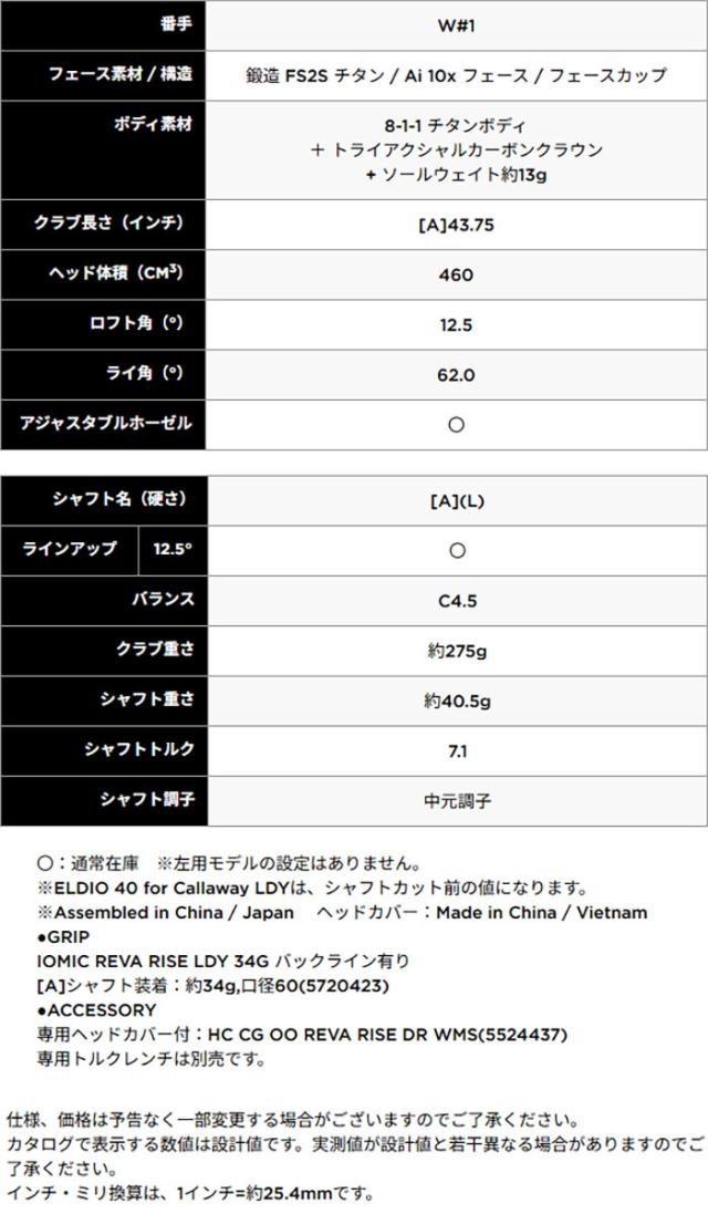 クラブ長さは43.75インチで、ロフト角は12.5度。