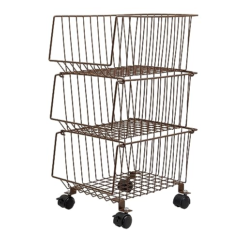 高儀 スタッキング式3段マルチ収納バスケット ブラウン