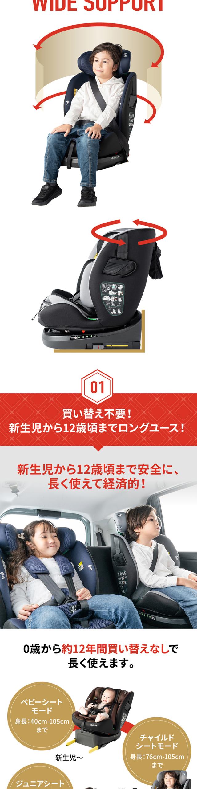 チャイルドシート ジュニアシート R129新安全基準適合 ターンピットF-TT チャイルドシート ジュニアシート R129新安全基準適合 新生児〜12歳頃 360度回転タイプ ISOFIX固定 ロングユース 40cm〜150cm ロングユース リクライニング 送料無料
