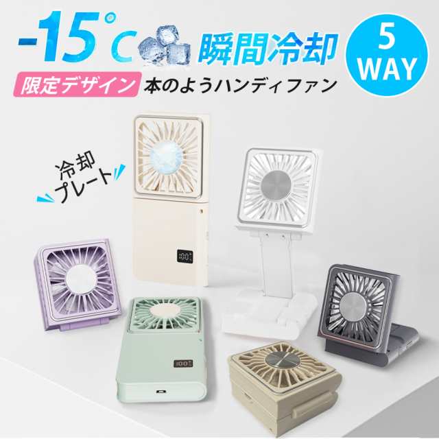 【2025年新作本型の限定デザイン★-15℃瞬間冷却】ハンディファン 冷却プレート搭載 5WAY手持ち扇風機 首かけ扇風機 卓上 4段階風量表示 3000mAh スマホスタンド機能 ミニ 軽量 静音 Type-C充電