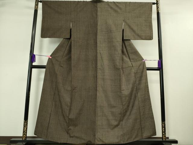 平和屋本店■極上 紬 片身替わり 格子 縞 逸品 DZAA4878kh5