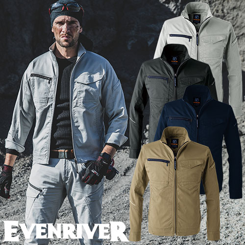 作業服 ブルゾン イーブンリバー EVENRIVER ソリッドストレッチライトジャケット US1707 作業着 春夏 接触冷感 ストレッチ 綿混 吸汗 シンプル カッコいい スッキリ