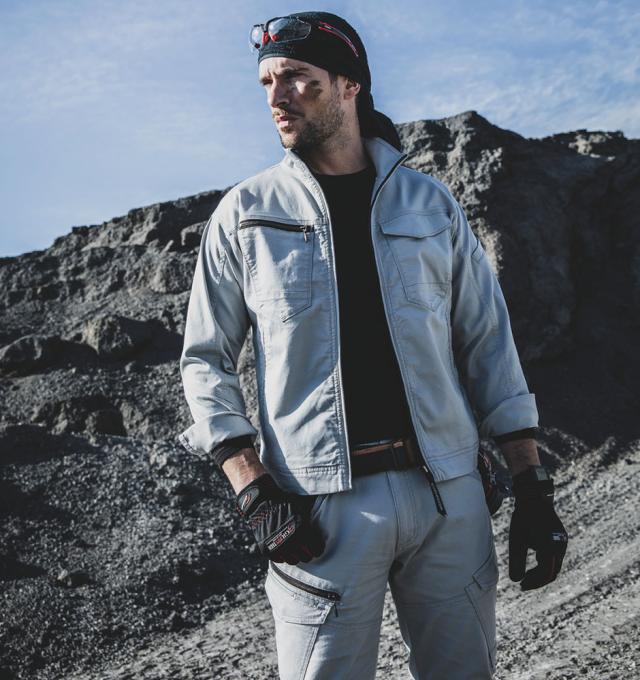 大胆な袖の切り替えステッチや、大きめ携帯も収納可能な多機能ポケットでスタイリッシュかつ機能性にも優れています。