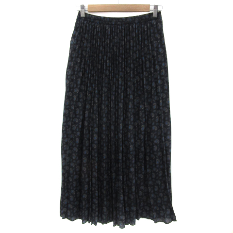 【中古】ニコアンド プリーツスカート マキシ丈 ロング丈 ペイズリー柄 マルチカラー 黒 ブラック レディース