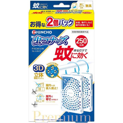 蚊に効く 虫コナーズプレミアム プレート 250日用 無臭(2個入)[虫除け 吊り下げタイプ]