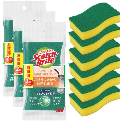 【企画品】3M スコッチブライト キズつけない キッチンスポンジ グリーン セット(2個入×3個)[たわし・スポンジ]