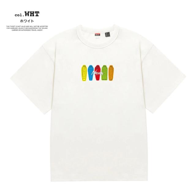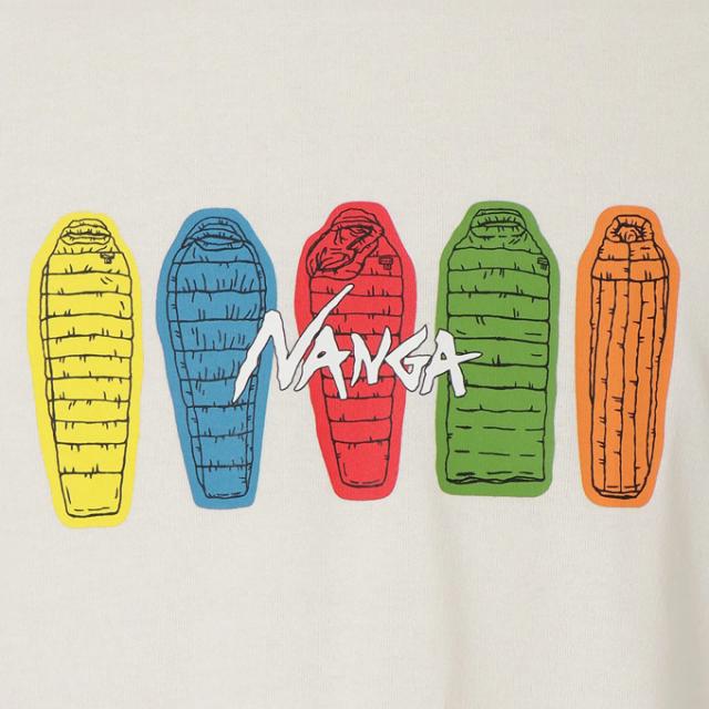 「 NANGA ナンガ 」 ECO HYBRID TEE(SB PT) エコ ハイブリッド ティー (SB PT) N2500-1M023Z / ユニセックス 半袖 Tシャツ 寝袋 シェラフ プリントTシャツ 親子コーデ リンクコーデ スリーピングバッグ クルーネック フロントプリント 2025SUMMER
