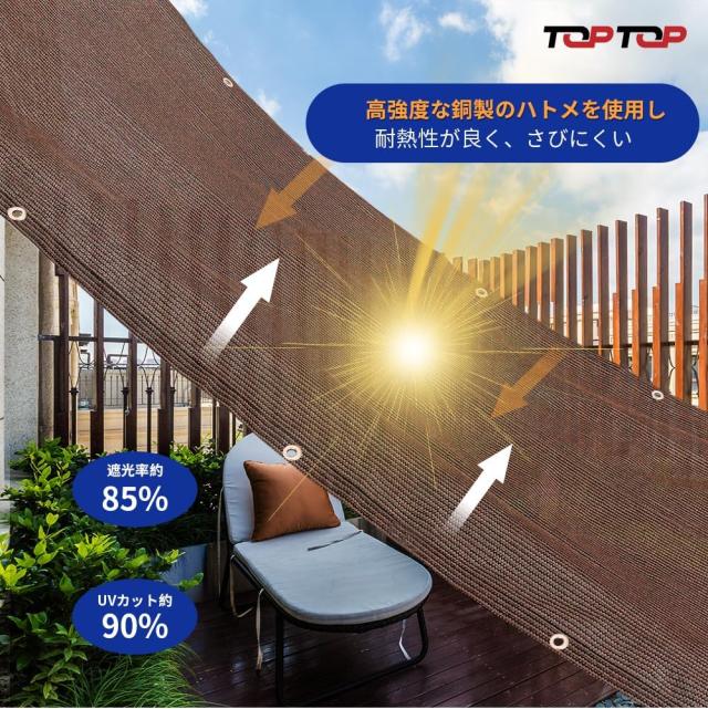 TOPTOP 2025年新改良 日よけシェード オーニングサンシェード 日差しよけ サンシェード 日よけシート 目隠しフェンス 遮光シート 日除けシェード UVカット 四辺アルミ製ハトメ 4571