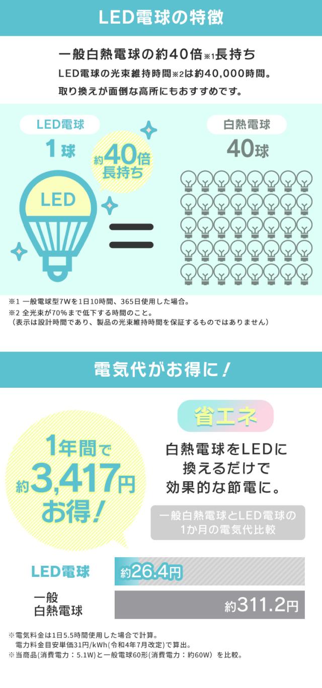 ※1 一般電球型7Wを1日10時間、365日使用した場合。