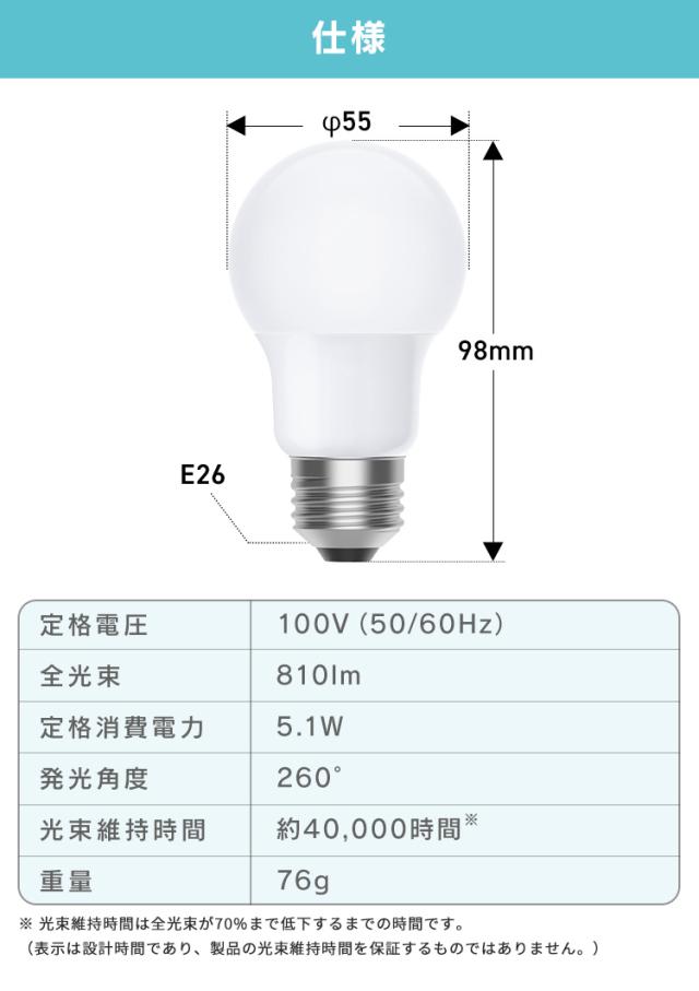 (表示は設計時間であり、製品の光束維持時間を保証するものではありません