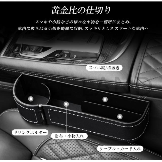 車シートの隙間に埋め、落下防止に役立つ改良版モデル隙間ボックス。取付方法:埋め込みだけの簡単取付個数:運転席+助手席 2個セットカラー:黒(赤糸)、黒(白糸)、レッド、ベージュ、珈琲色、灰色汎用性:国産車から輸入車まで幅広く対応細部までこだわった設計で、多様なシーンで活用可能です。例えば、ドリンクホルダーは伸縮式になっており、大小さまざまなボトルを収納できる。シートの隙間に置くだけ、落下防止の隙間埋めになるだけでなく、車内に散らばる小物も綺麗に収納。スマホ、小銭など、様々な小物を一箇所にまとめ、スッキリとした車内空間に。【注意事項】※ユニバーサルデザインですが、センターコンソールのないモデルもあり、センターコンソールがシートより低く、隙間が無い、センターコンソールとシートの隙間が大きすぎる、稀に場合によってはサイドブレーキに干渉します。※車種名が記載されていますが、取付が不可の場合がございます。※コンソールボックスがないお車には装着できません。※取扱説明書はございません。