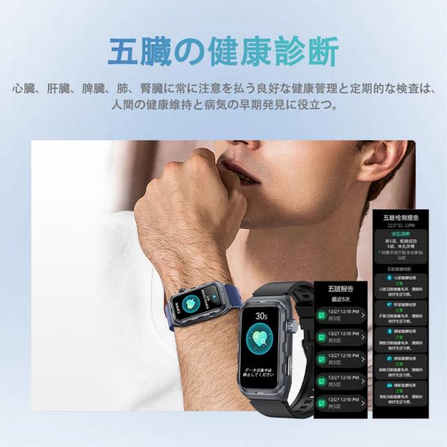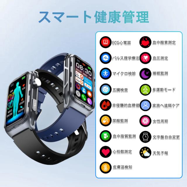 即日発送 スマートウォッチ 血糖値 血圧測定 五臓健康管理 血中酸素 尿酸 血中脂質 心拍数 BMI 心電図 睡眠監視 体温検知 呼吸訓練 女性生理管理 リモートケア 多運動モード 文字盤自由設定 通話機能付き 着信&メッセージ通知 iphone Android対応 日本語説明書付き