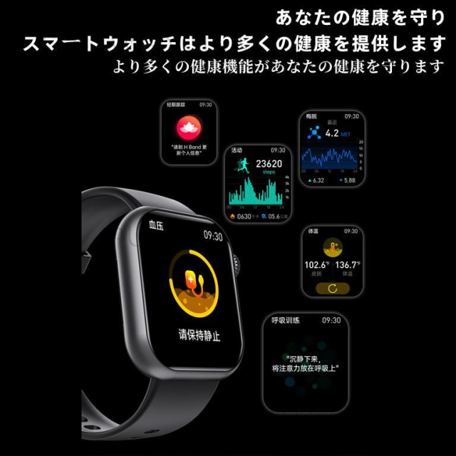 - 大変機能が充実していて使いやすい商品です。日々の健康管理を行う中で体温、血圧、心拍、血中酸素が計測され、スマホとのアプリ接続によるデータ管理がしやすいです。