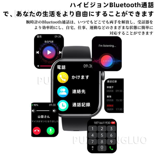 【Bluetooth5.3通話機能付き&着信通知】 このスマートウォッチは業界先端Bluetooth5.3を採用し、通信速度、通信範囲、バッテリ寿命、接続の安定性が飛躍的に向上され、前のスマートウォッチより安定しています。専用アプリと接続するとスマートウォッチで、着信やメッセージの受信、LINE、Twitter、Facebook、メール、Instagramなどのアプリからの通知を表示し、内容も確認できます。スマートウォッチで、直接に電話をかけることや着信拒否も実現可能。また電話の連絡先を同期したり、通話履歴、通話記録も保存できます。 ※ご注意:Bluetooth通話&メッセージ通知と音楽再生機能を利用するとオーディオ bluetoothとペアリング接続が必要です。