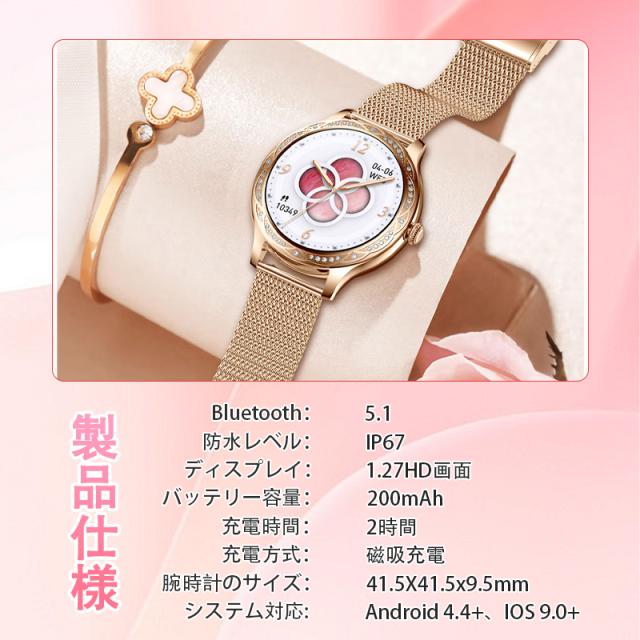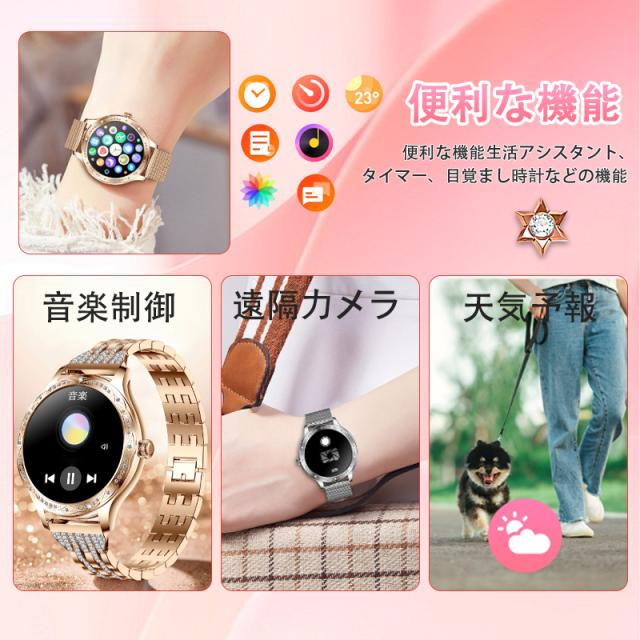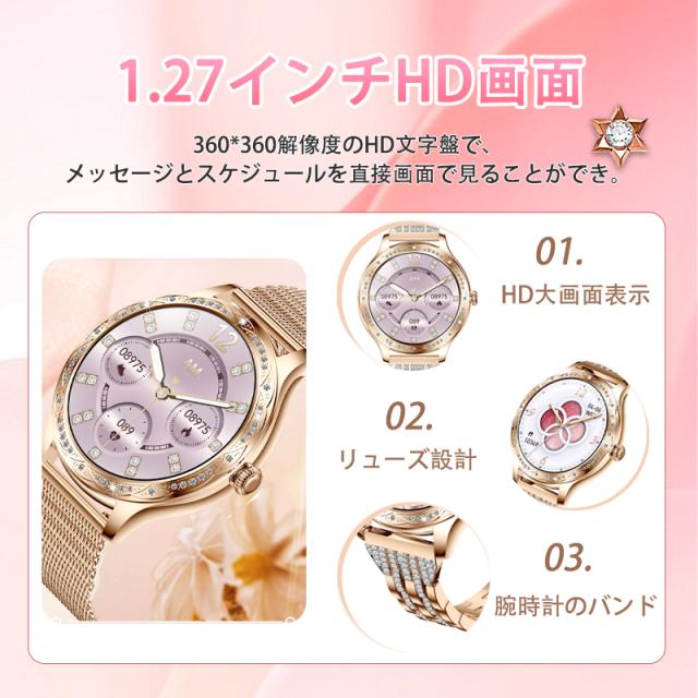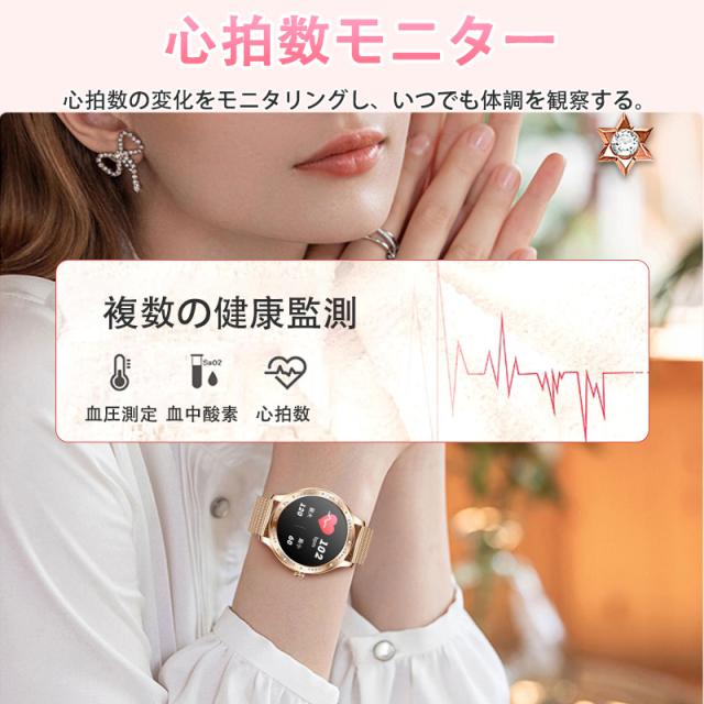スマートウォッチ レディース 2025 血圧測定 血中酸素 Smart watch iphone/アンドロイド対応 月経管理 睡眠管理 通話機能付き 活動量計 歩数計 カロリー消費 走行距離 腕上げ点灯 着信通知 日本語取扱説明書 腕時計 母の日 プレゼント