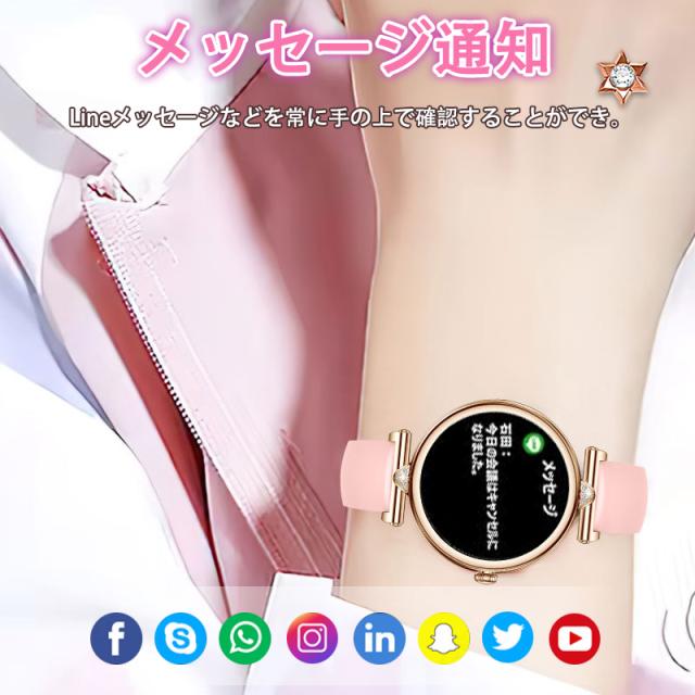 【デザインが女性向けで美しい】スマートウォッチ レディース 丸型は、女性の手首に相応しい人気の1.28インチ、可愛い丸型ディスプレイ!高精細AMOLEDディスプレイを採用しており、晴天下でもストレスなく視認・操作することが可能。厚みはたった9.5mmです!12時と6時にダイヤモンドデザインを採用し、キラキラをイメージしました。おしゃれで可愛いスマートウォッチ!