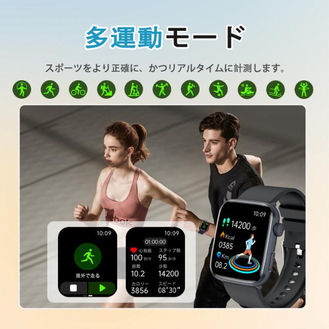 【多種類な運動モード&多機能なスマートウォッチ】多種類なスポーツモードがアプリで利用でき、毎日のスポーツニーズに応えることができます。毎日の運動状態を記録するだけでなく、リラックスを記録などの便利機能を搭載されております。記録と通知機能もあります。スタイリッシュなデザインは職場や生活の中でレディースもメンズも使用いただけます。