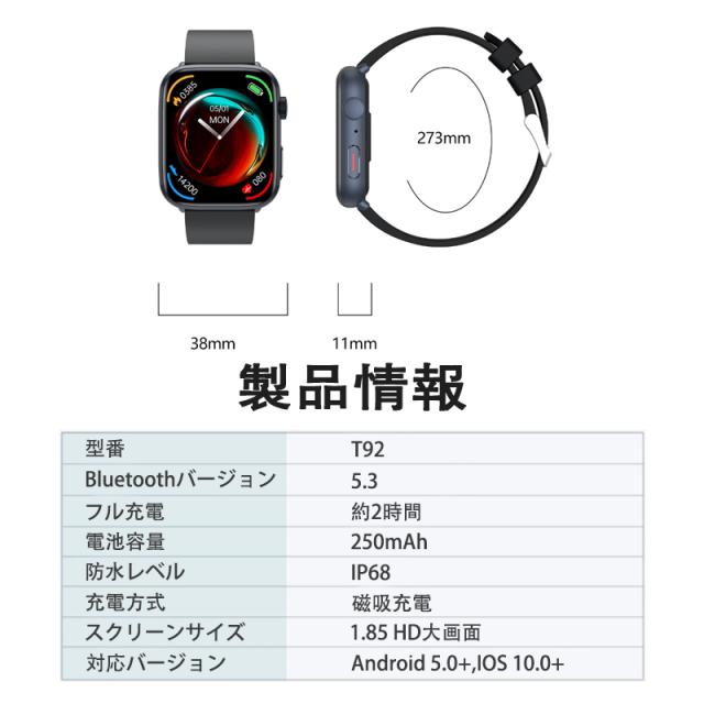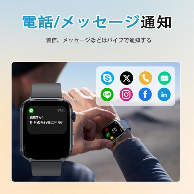 【Bluetooth5.3通話機能付き&着信通知】 このスマートウォッチは業界先端Bluetooth5.3を採用し、通信速度、通信範囲、バッテリ寿命、接続の安定性が飛躍的に向上され、前のスマートウォッチより安定しています。専用アプリと接続するとスマートウォッチで、着信やメッセージの受信、LINE、Twitter、Facebook、メール、Instagramなどのアプリからの通知を表示し、内容も確認できます。スマートウォッチで、直接に電話をかけることや着信拒否も実現可能。また電話の連絡先を同期したり、通話履歴、通話記録も保存できます。 ※ご注意:Bluetooth通話&メッセージ通知と音楽再生機能を利用するとオーディオ bluetoothとペアリング接続が必要です。