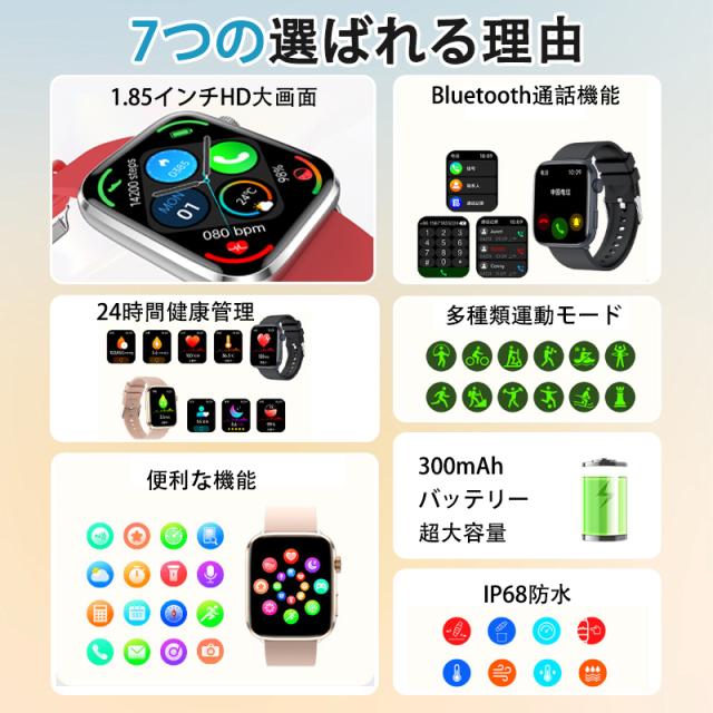 【IP68防水&耐久バッテリー&素適なプレゼント】IP68規格の防水・防塵性能を持ち、日常生活での手洗い、雨、汗などに取り外す必要がありません。大容量バッテリーを搭載され、一回のフル充電で約4~7日間持続できます。待機時間は約30日間となります。(個人の利用状況によっては、使用時間が異なります)敬老の日、誕生日、父の日、母の日、新年 クリスマスに最高なプレゼントとなります。