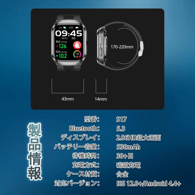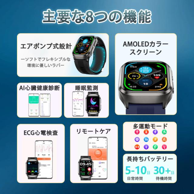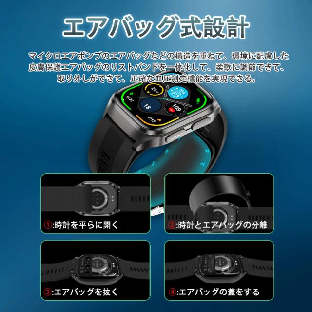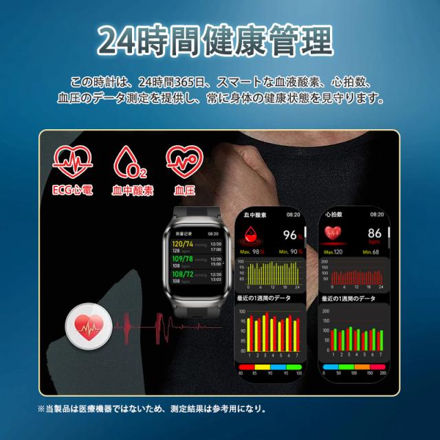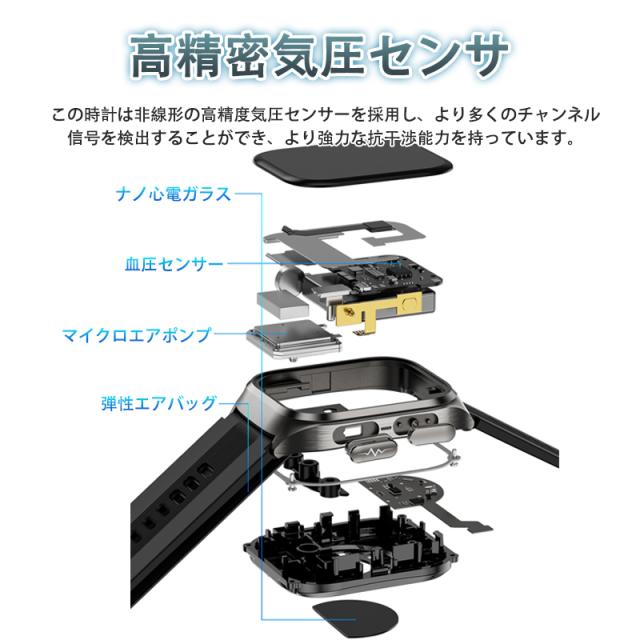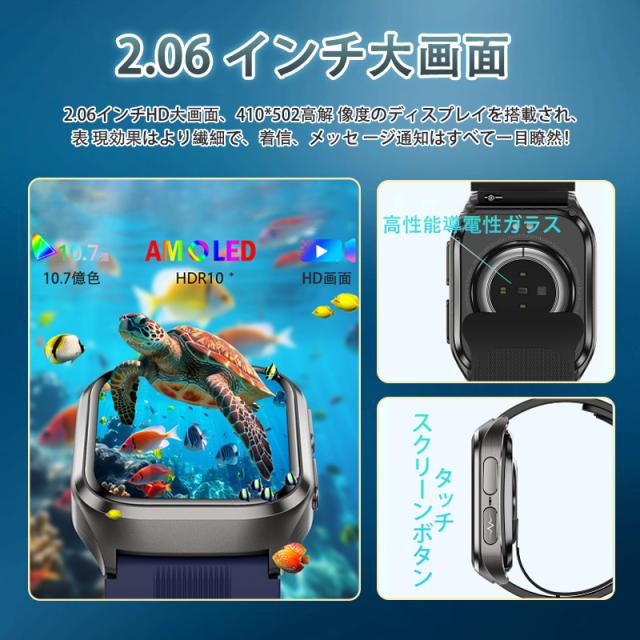 スマートウォッチ iphone Android対応 血圧 血糖値測定 通話機能付き 日本製センサー 2.06インチ超大画面 血中酸素 尿酸 血中脂質 心電図ECG 心拍数 睡眠監視 体温検知 着信&メッセージ通知 SOS緊急連絡 多運動モード 文字盤自由設定 腕時計 贅沢ギフト