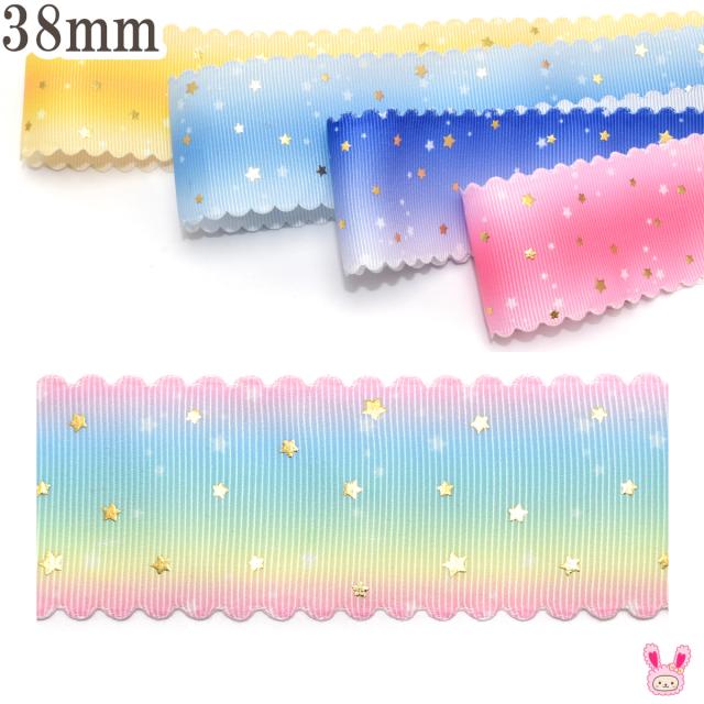 プリントリボン ゆめかわスカラップと箔押しスターリボン 幅38mm 1m単位 切り売り (3m以上)