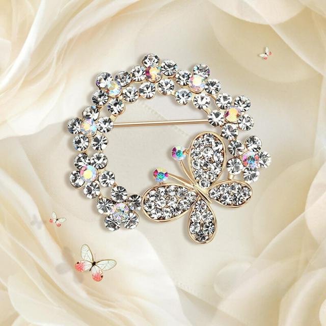 【蝶々モチーフ ブローチ レディース】フラワーリース ブローチ ジルコン キラキラ 華やか アクセサリー 上品 おしゃれ 軽量 軽やか シンプル エレガント ギフト プレゼント フォーマル 結婚式 二次会 入学式 卒業式 スーツ ジャケット 夏服 春 夏 秋 冬