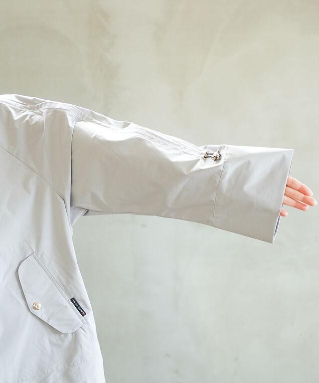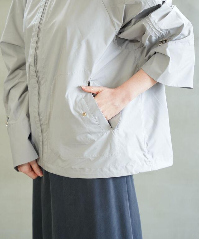 【特徴】左右スナップボタン付きポケット、袖裾ドローコード付き、内側にファスナーポケット1個