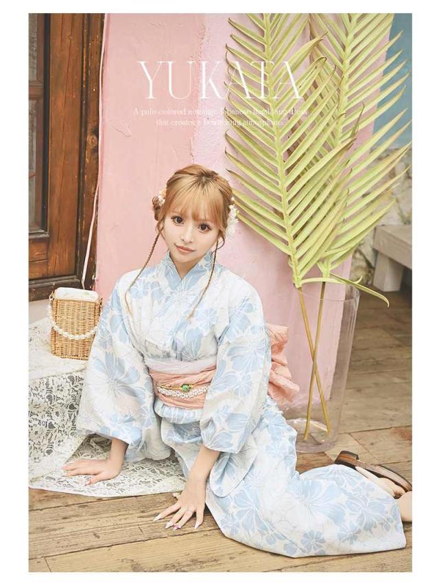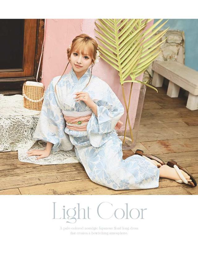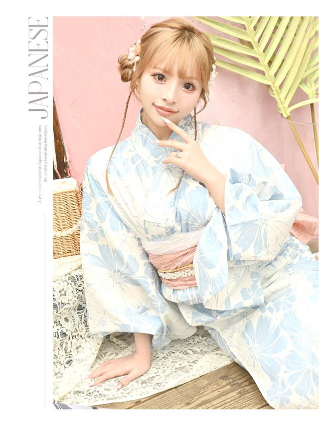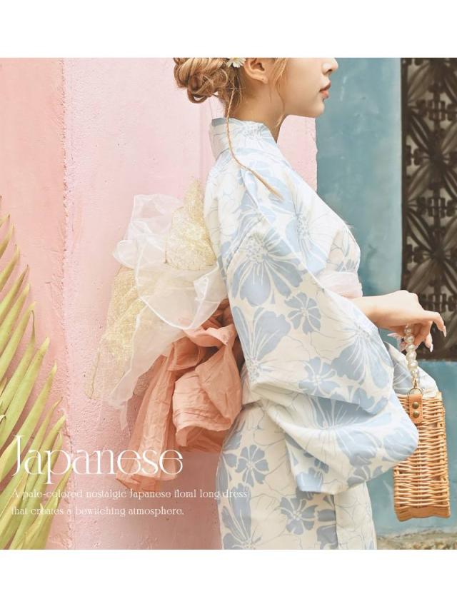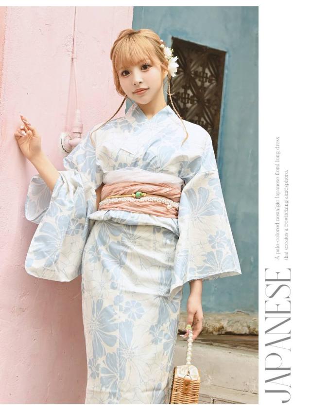 ☆SNS映えも狙えるギャル浴衣は大きな花柄で周囲の視線を釘付けにする女性用浴衣。