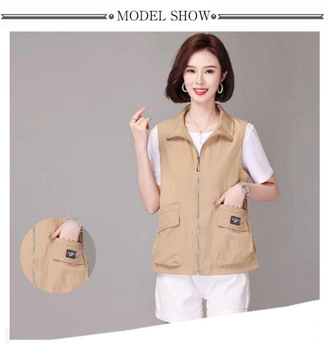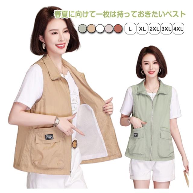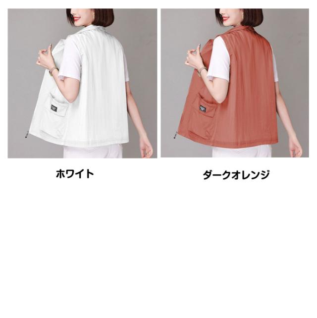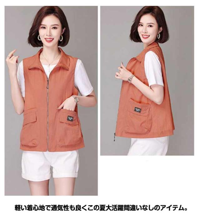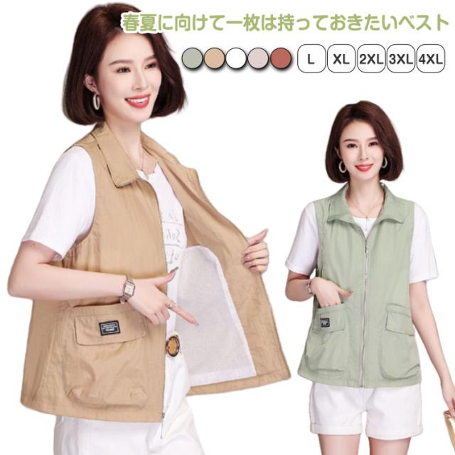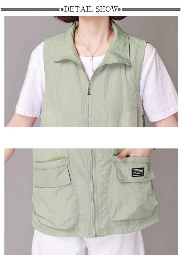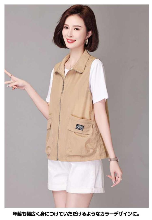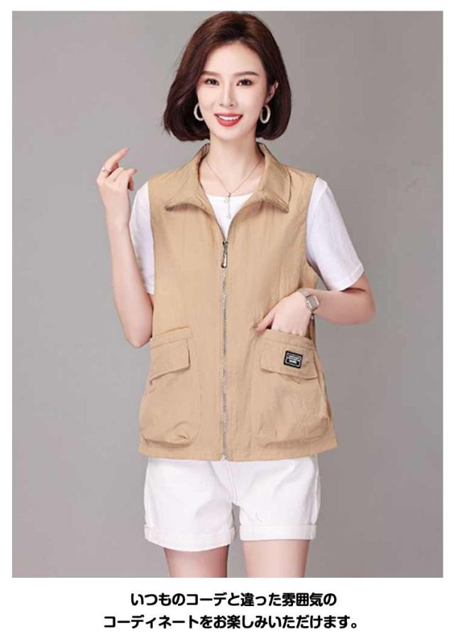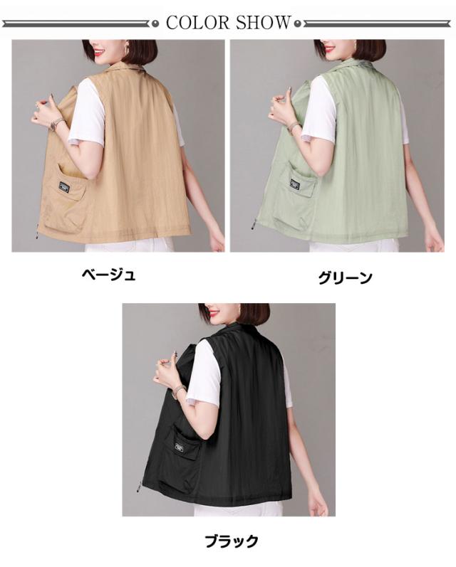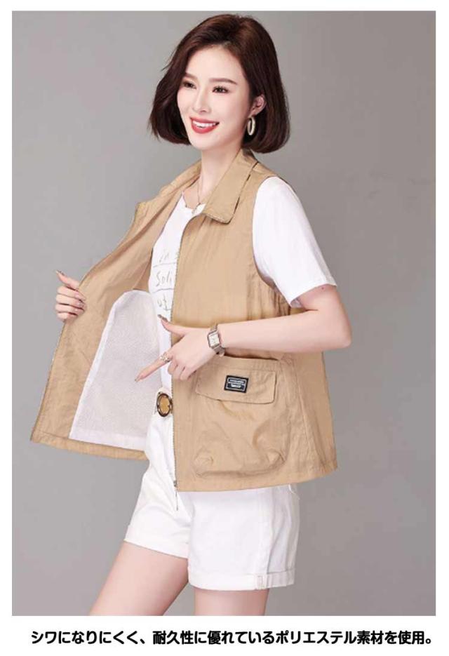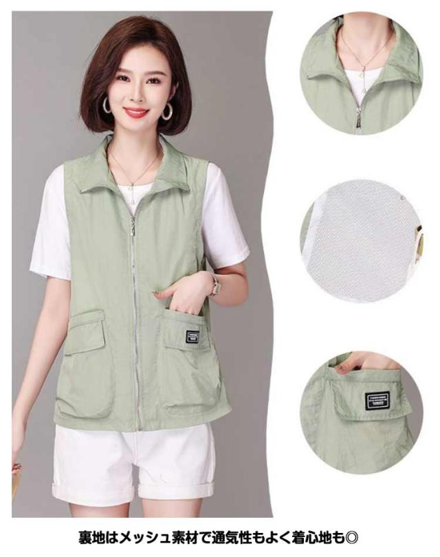 ベスト レディース 夏服 ワークベスト 薄手 ジップアップ 前開きベスト ノースリーブ ジャケット 春夏 カジュアル ミリタリーベスト ポケット付き 大人 女性 サマージャケット おしゃれ カジュアル アウトドア 無地 シンプル トップス 送料無料 大きいサイズ