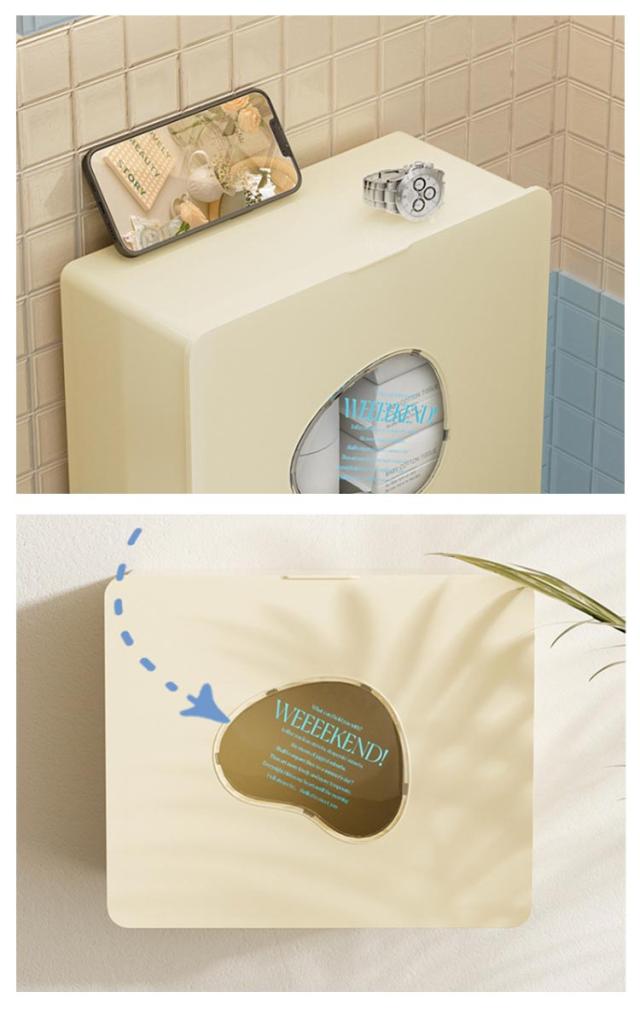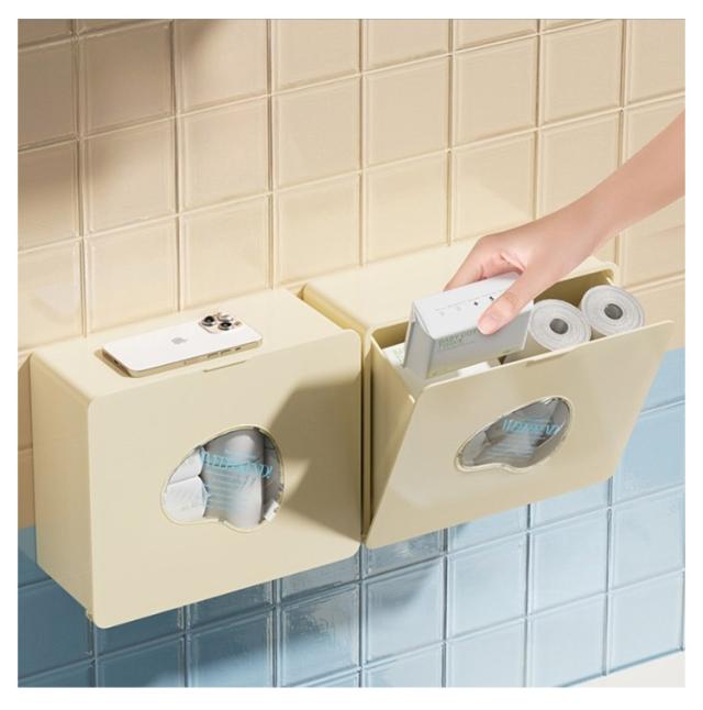 | ・トイレットペーパー収納ボックス ・斜めに開口するフラップ式で開閉スムーズ ・壁面に浮かせて取り付けるため、掃除の際もラクラクです。 | |