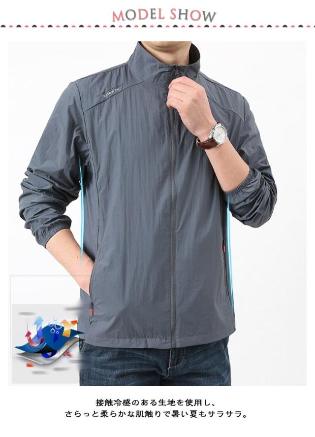 ラッシュパーカー 長袖 メンズ 薄手 フードなし カジュアル 夏用 コート UVカット 涼しい ジャケット パーカー 立ち襟 速乾 紫外線対策 日焼け防止 冷房対策 ジャンパー 無地 軽量 通気性 ブルゾン 大きいサイズ アウトドア ひんやり お釣り スポーツ用