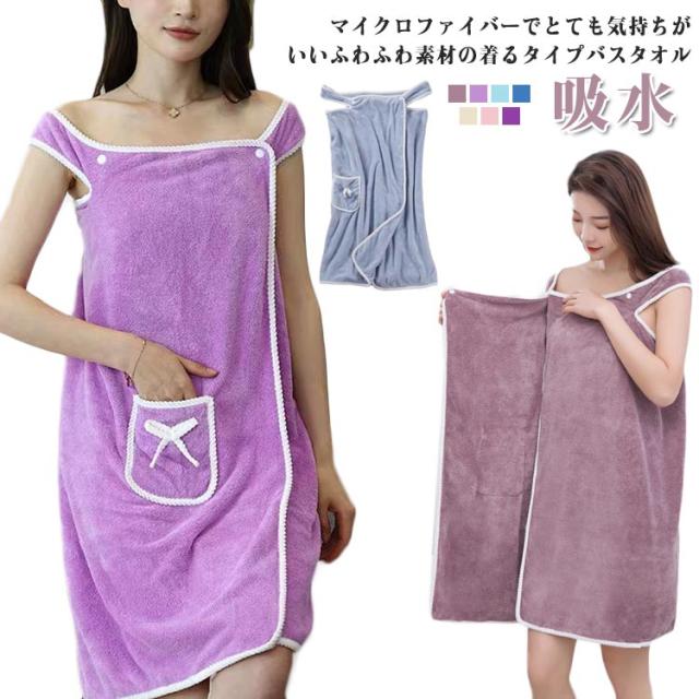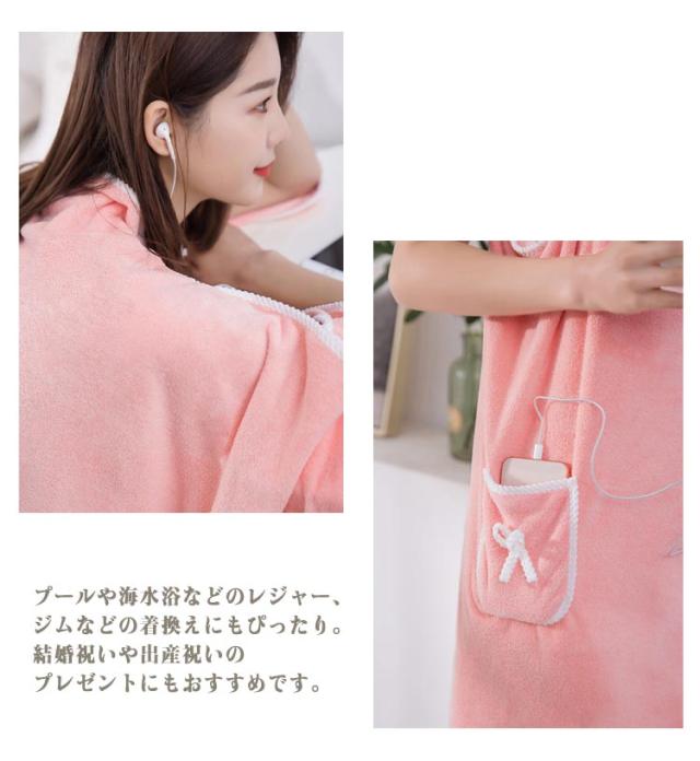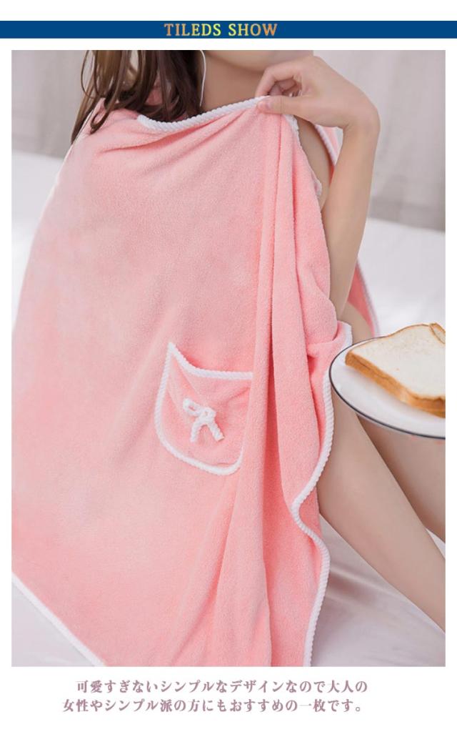 バスタオル ラップタオル ラクちん 楽 巻バスタオル タオル 大判 ブランケット ふわふわ ポケット付 バスローブ マイクロファイバー 吸水 リボン レディース ラップ バスタオル バスラップ お風呂上り プール 【送料無料】
