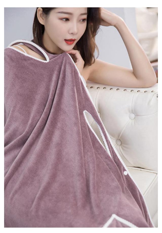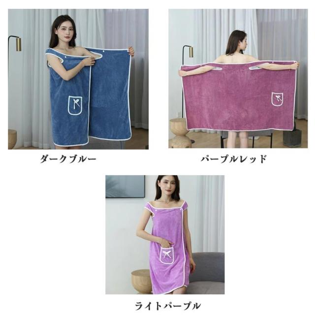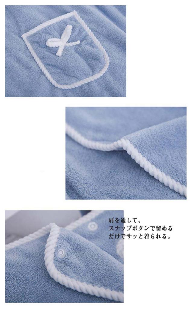 | マイクロファイバーでとても気持ちがいいふわふわ素材の着るタイプバスタオル。 肩を通して、スナップボタンで留めるだけでサッと着られる。 厚過ぎない軽めの生地なので、お天気が悪い日でも浴室乾燥で対応できるのも嬉しいポイント。 プールや海水浴などのレジャー、ジムなどの着換えにもぴったり。結婚祝いや出産祝いのプレゼントにもおすすめです。 可愛すぎないシンプルなデザインなので大人の女性やシンプル派の方にもおすすめの一枚です。 | |