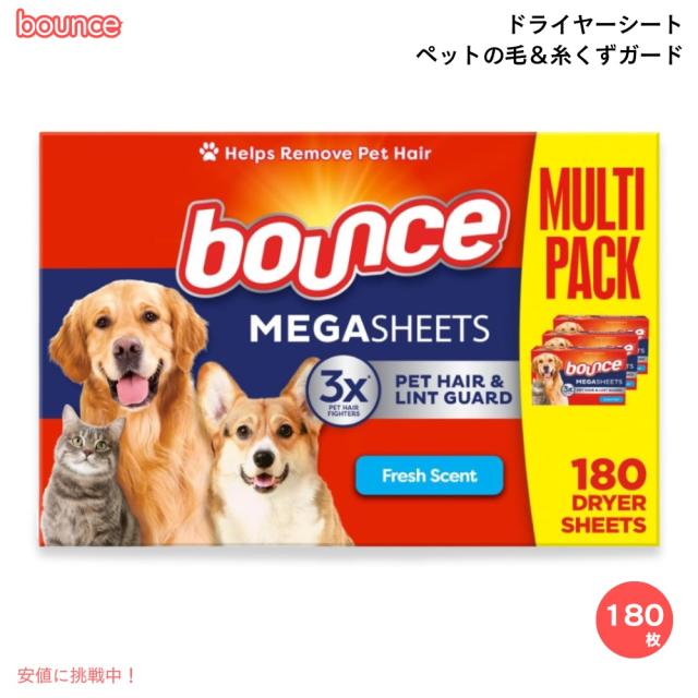 Bounce バウンス メガシート ペットの毛と糸くずガード フレッシュの香り 180枚入り ドライヤーシート 柔軟剤シート