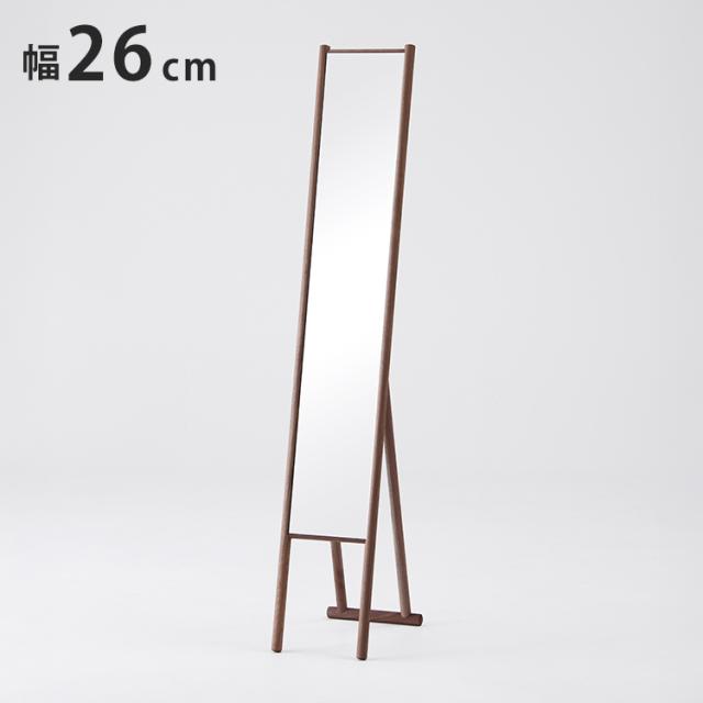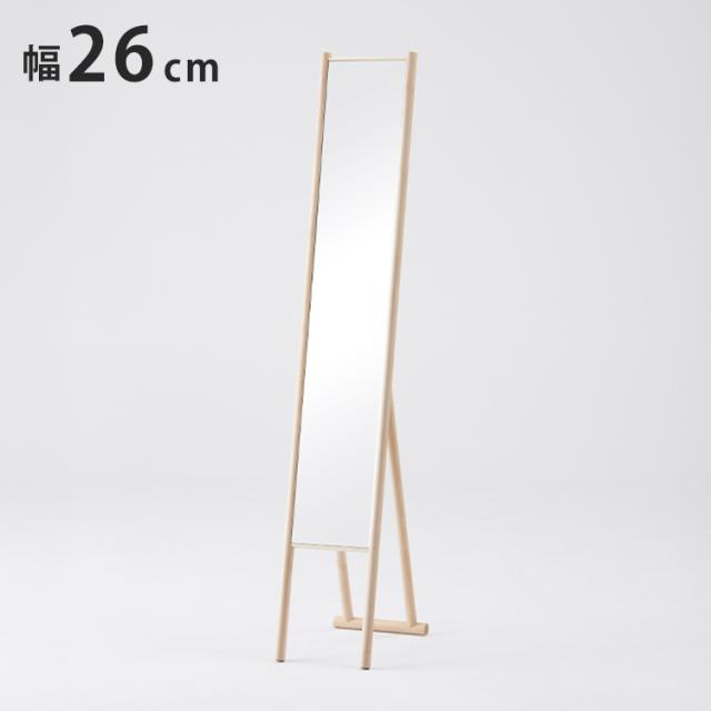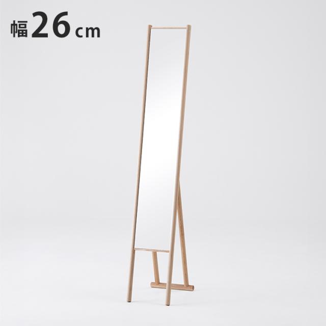 幅26.5cmのスリムな姿見。細身ながら全身を映すことができるので、出かける前にコーディネートを チェックするのにぴったりです。