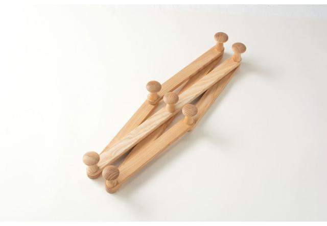 【日本製 アコーディオンフック 北海道産 タモ材】 オイル仕上げ フック 帽子掛け 小物掛け 玄関 リビング 木製 木目調 木目 無垢材 旭川家具 幅75cm 奥行7.5cm 高さ39.5cm ナチュラル(代引不可)
