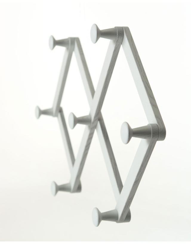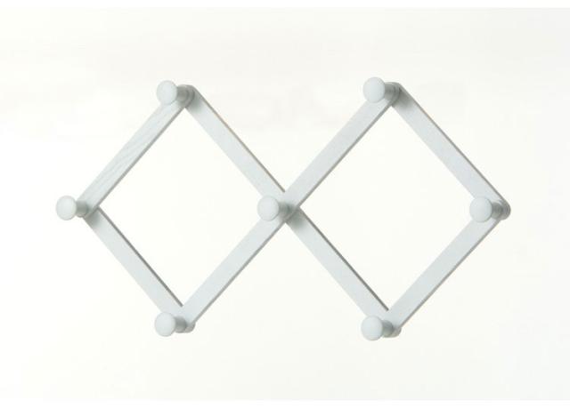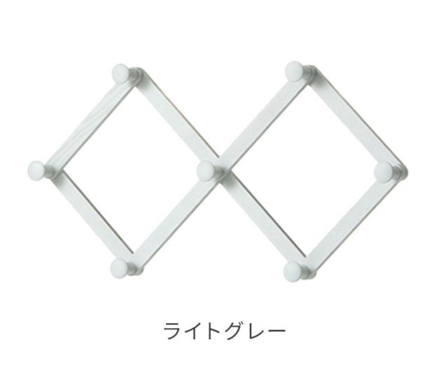 【日本製 アコーディオンフック 北海道産 タモ材】 エナメル塗装 フック 小物掛け 玄関 リビング 木製 木目調 木目 無垢材 旭川家具 幅75cm 奥行7.5cm 高さ39.5cm ライトグレー レッド ブルー(代