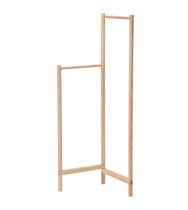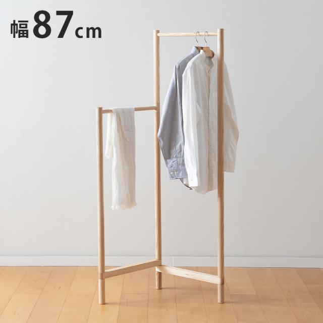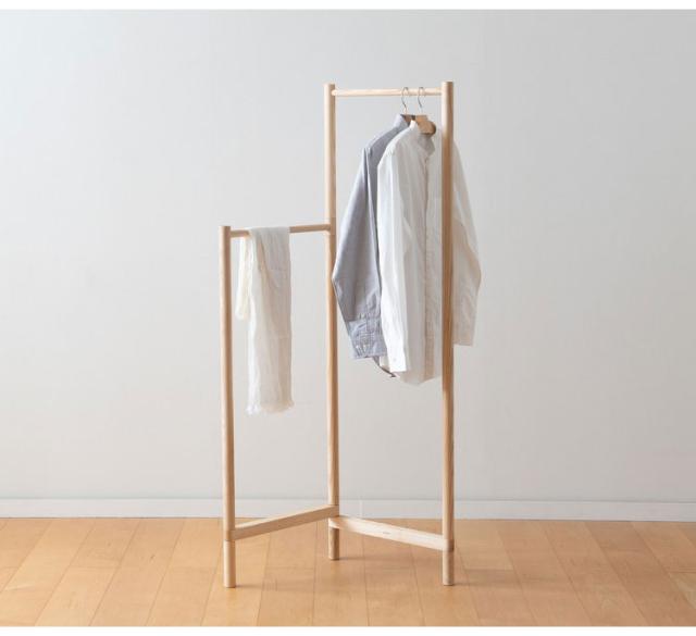 さっとアウターやバッグなどが掛けられるコンパクトな衣桁です。高さ違いの2連のバーは、圧迫感のない女性の目線ほどの高さと、ちょうど腰のあたりの高さの組み合わせで使い道はいろいろ。
