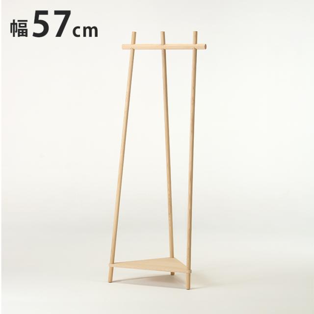 【日本製 コーナーラック 北海道産 タモ材】 オイル仕上げ 衣類掛け 衣服収納 ラック 小物置き 木製 木目調 木目 無垢材 旭川家具 幅57cm 奥行45cm 高さ160cm ナチュラル(代引不可)【送料無料】