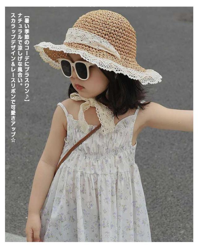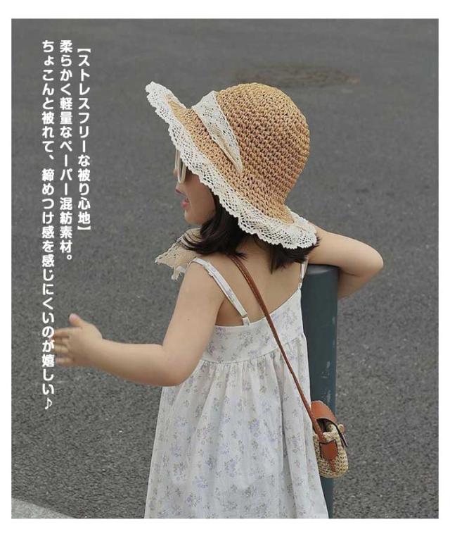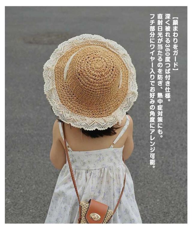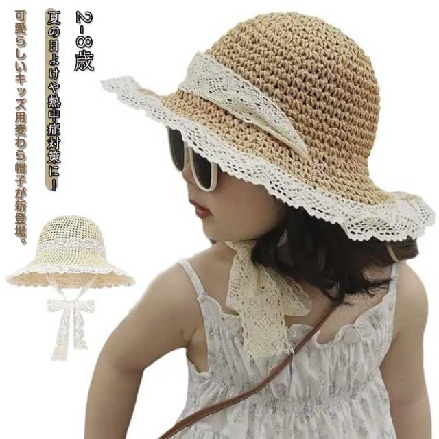 夏 子供 ゴム付き 麦わら帽子 子供 女の子 麦わら 日よけ帽子 ストローハット ペーパーハット 可愛い キッズ帽子 日除け帽子 こども 子ども ベビー 日除け 日よけ キッズ 春 帽子 春夏 あご紐付き キッズファッション ベビーファッション
