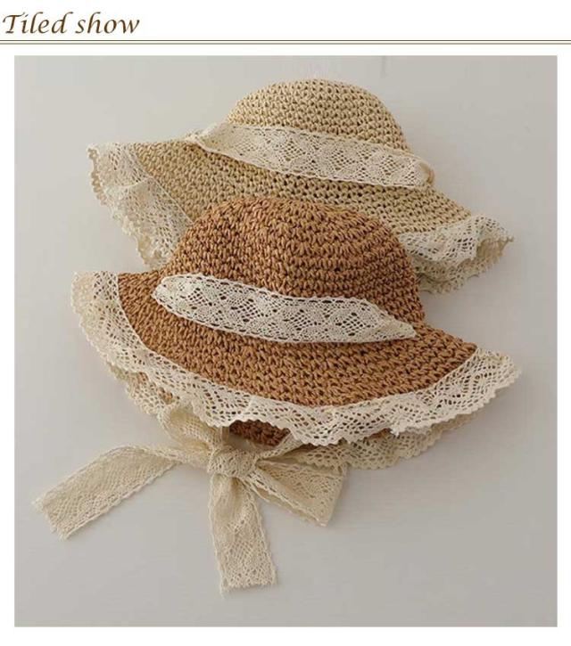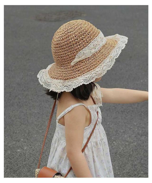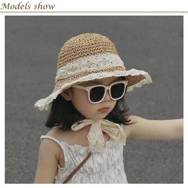 | 夏の日よけや熱中症対策に!可愛らしいキッズ用麦わら帽子が新登場。 【暑い季節のコーデにプラスワン♪】 ・ナチュラルで涼しげな風合い。スカラップデザイン&レースリボンで可愛さアップ☆ 【顔まわりをガード】 ・深く被れる360度つば付き仕様。直射日光が当たるのを防ぎ、熱中症対策にも。フチ部分にワイヤー入りでお好みの角度にアレンジ可能。 【ストレスフリーな被り心地】 ・柔らかく軽量なペーパー混紡素材。ちょこんと被れて、締めつけ感を感じにくいのが嬉しい♪ 【自分サイズにフィット】 ・内側の紐でサイズ調節OK。頭の大きさに合わせてフィット感をチェンジ。 【持ち運びラクラク】 ・折りたためばスリムサイズに。シワになりにくく型崩れもしにくいので、旅行などの持ち運びにも便利。 | |