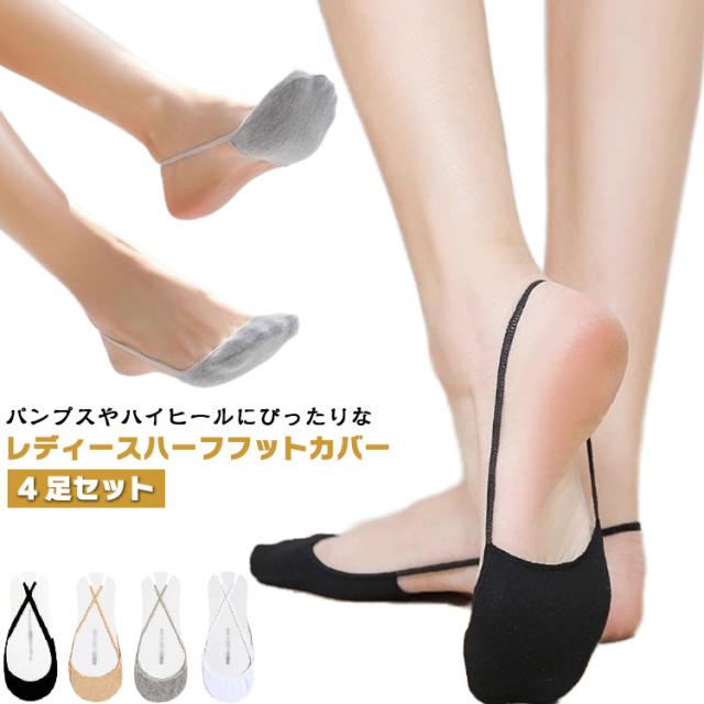 バックストラップ付き 4足セット ソックス 浅履き レディース 接触冷感 靴下 フットカバー 脱げにくい フットウェア 足裏クッション付き くつ下 パンプス 脱げない つま先 カバーソックス おしゃれ 薄手 おしゃれ 4足セット かかと滑り止め 夏用 吸汗速乾