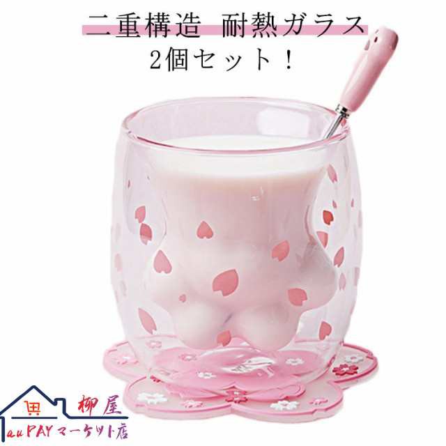2個セット!グラス ダブルウォール 二重構造 アニマル ネコ 耐熱ガラス 可愛い プレゼント ギフト コップ ダブルウォールグラス タンブラー 動物 耐熱 カップ 猫 ネコ かわいい 結露 水滴がつかない