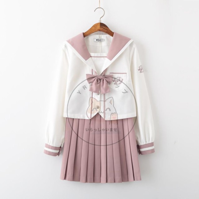 制服 セーラー服 コスプレ ピンク コスチューム セット 学生制服 長袖 リボン 大きいサイズ ミニスカート 女子校生 女子高生 学生 ビッグサイズ