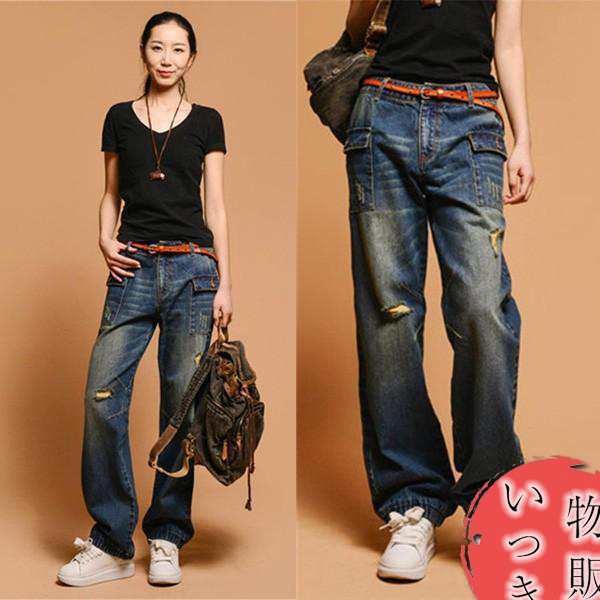 デニム レディース ジーパン ジーンズ ガウチョパンツ ガチョウ風 ガウチョパンツ レディース デニムパンツ ダメージ加工 美足 美尻