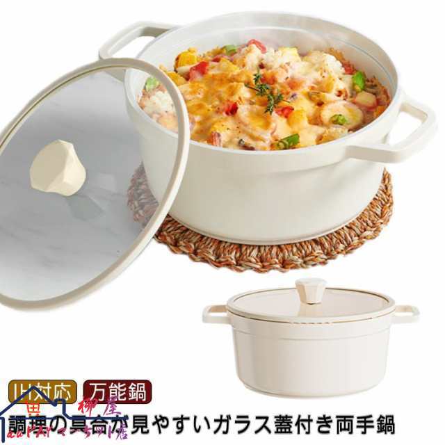 炊飯鍋 両手鍋 ご飯鍋 ごはん鍋 ガラス蓋 IH対応 ガス火対応 ストーブ 万能鍋 揚げ物 煮物 焦げ付きにくい 煮込み カレー ごはん ご飯 炊ける おしゃれ プレゼント ギフト